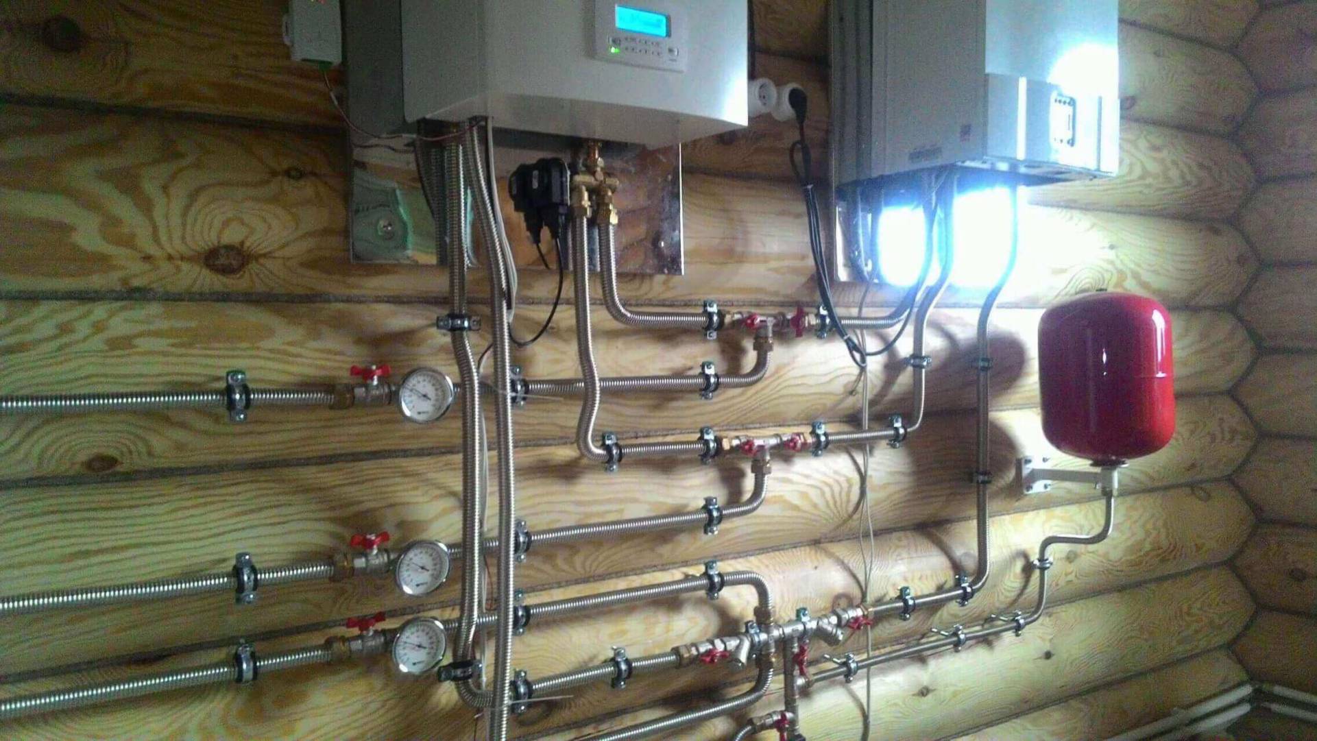 Монтаж системы отопления для частного дома из гибкой нержавеющей трубы.